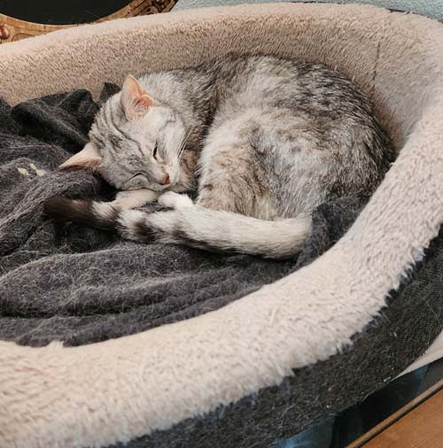 Her last day was a good day. Mostly lucid, spoiled with churu whenever it looked like she wanted it, Isis left this world to pass into the next in the lap of her beloved chosen human in a beam of sunlight. It was a gentle passing full of love and warmth. It was the kindest thing we could do for her after all she had done for us. Afterwards, we let her siblings smell her body and sense her passing.