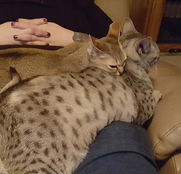 Thinking of fixing things, I have a 5.5 lb cat insisting it is time to play and that is the only answer she cares about. Have a cat picture. Leeloo and Pharaoh were very glad I was home from the convention.